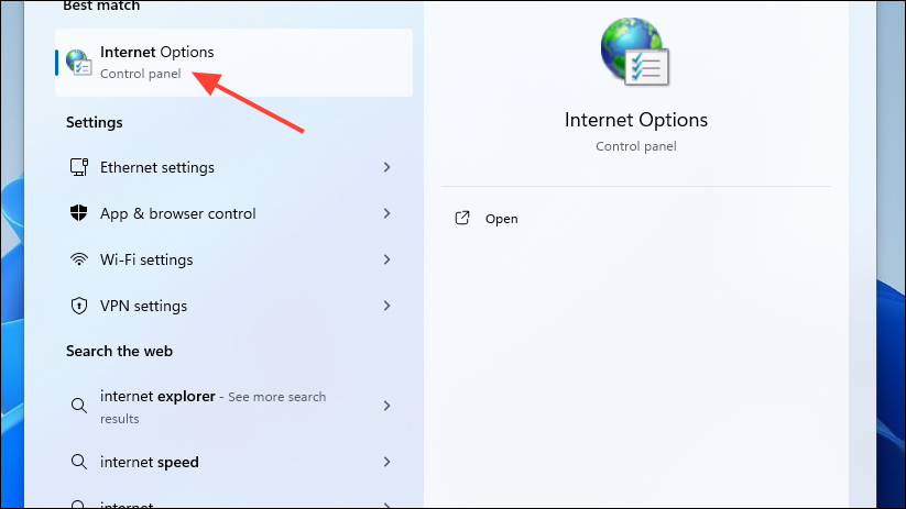 Internet Optionsand click on it when it appears.