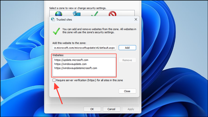 Fix 11: Add Microsoft Windows Update Sites to Trusted Sites