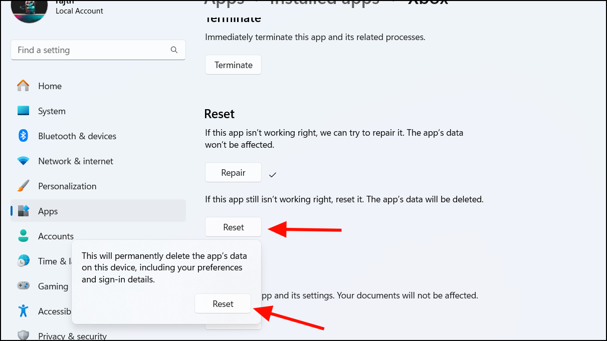 Repair and reset the Xbox, Microsoft Store, and Game Bar apps