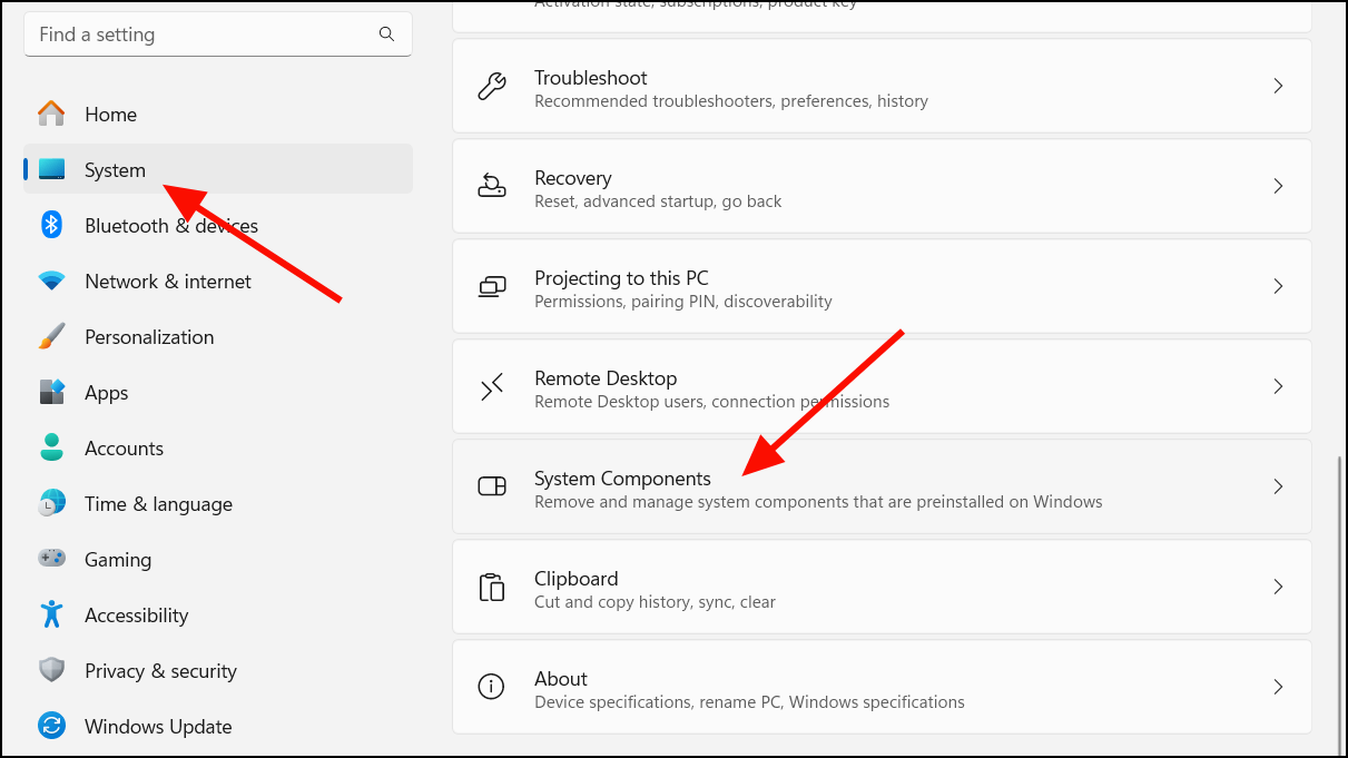 Step 1: In the Settings app, go back to the main menu and select System. Then, choose System Components.
