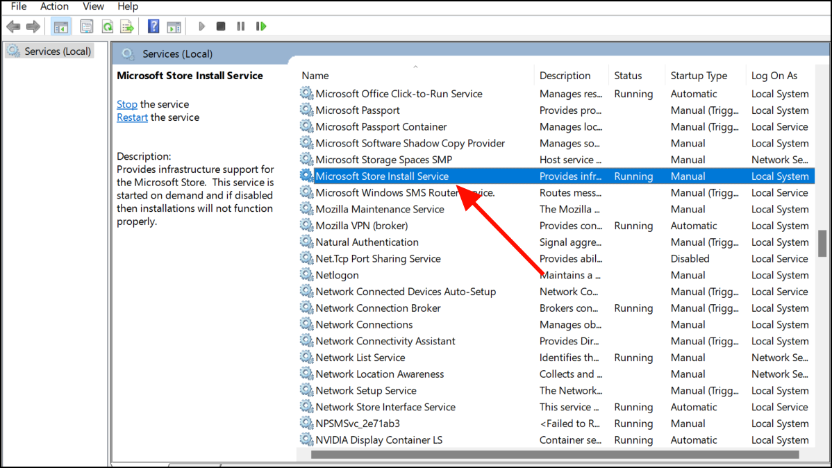 Step 5: Locate Microsoft Store Install Service, double-click it, and set its Startup type to Automatic. Restart the service if necessary.