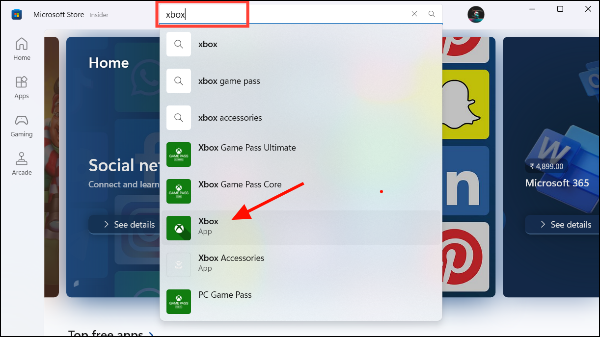 Step 4: Open the Microsoft Store, search for the Xbox app, and click Install to reinstall it.
