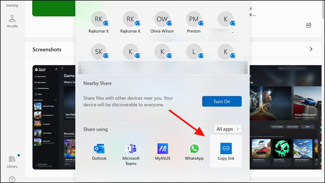 Step 2: Click the Share button and select Copy link to copy the app's URL.