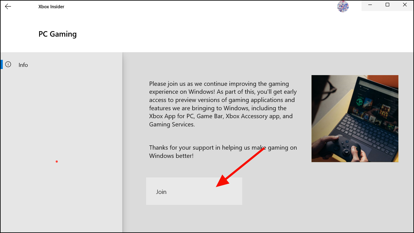 Step 3: Navigate to the Previews section and select PC Gaming. Click Join to enroll in the preview.