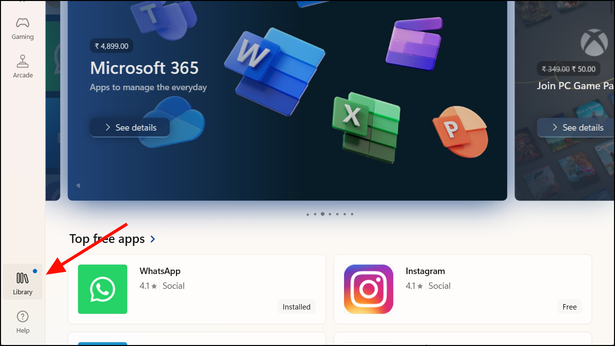 Step 4: Wait a few minutes for your membership to activate. Then, open the Microsoft Store and click Library on the left side.
