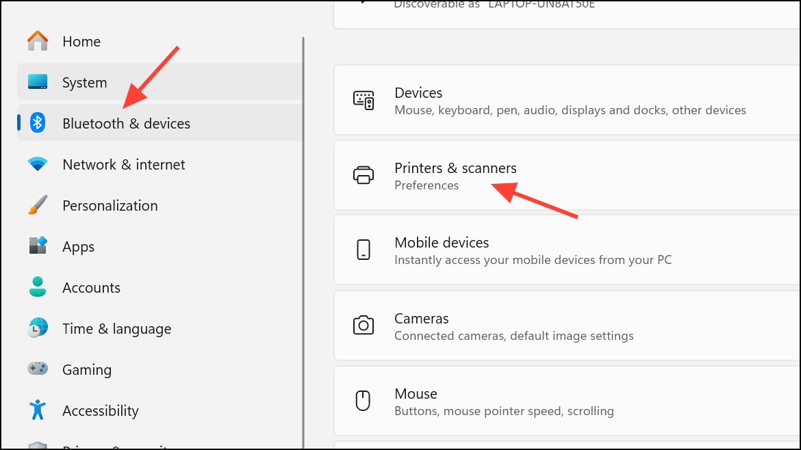 Step 1: Go to Start > Settings > Bluetooth & devices > Printers & scanners.