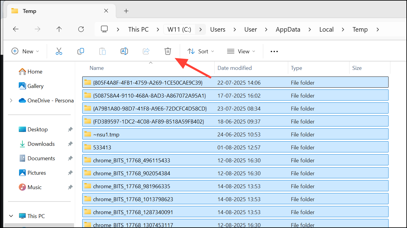 Step 4: Clear temporary files by pressing Win + R, typing %temp%, and deleting all files in the Temp folder. This removes leftover configuration files that could interfere with new installations.