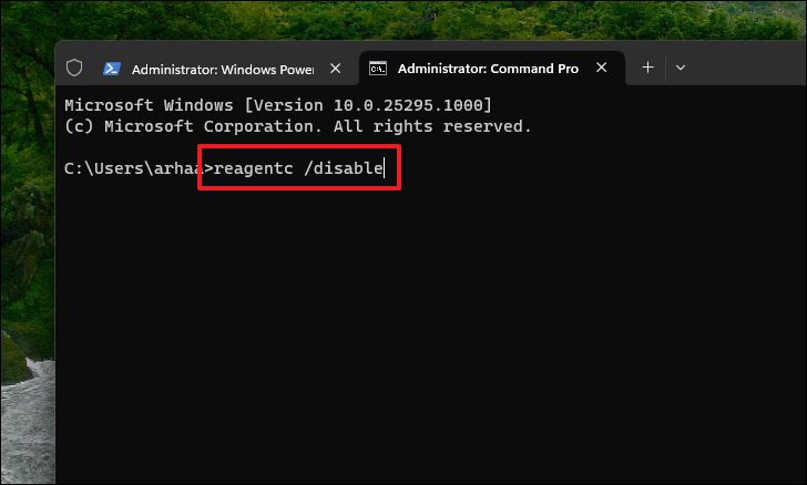 Step 4: Type or copy and paste the following command, then press Enter to disable WinRE: