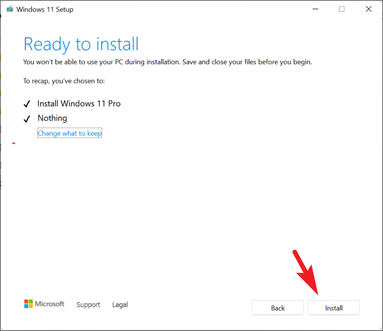 Step 8: Select Nothing to perform a clean installation, then click Next.