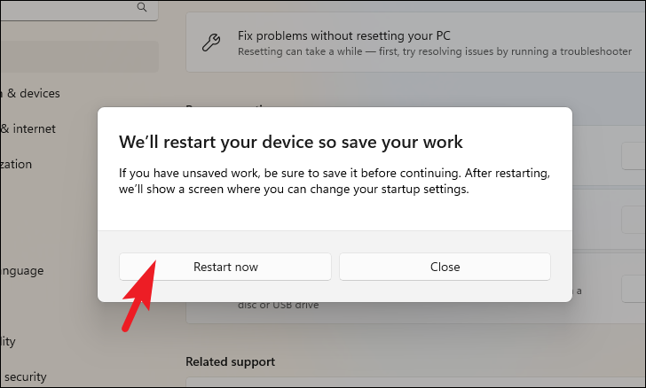 Step 5: Restart your computer. After the restart, attempt to reset your PC again.