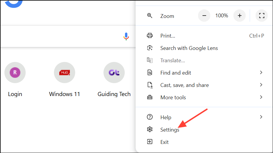 Step 1: Click the three vertical dots (⋮) in the top-right corner of Chrome and select Settings.