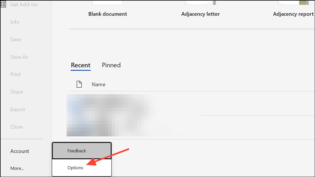 Step 2: Click the File tab in the upper-left corner, then choose Options from the menu on the left. This opens the Word Options dialog box.