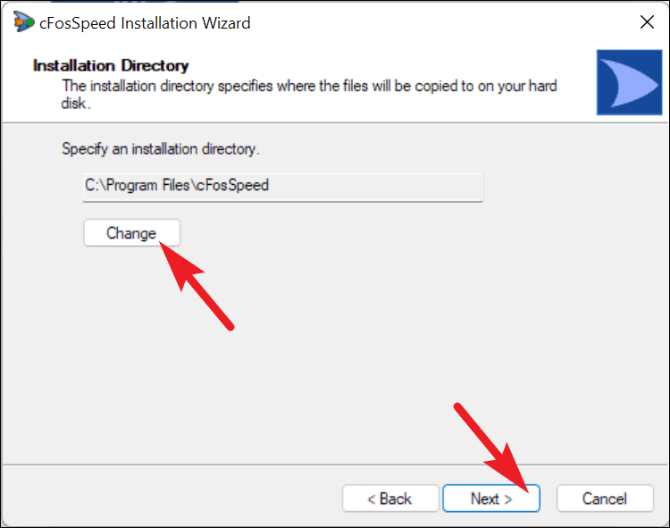 - Choose the installation directory. If you installed cFosSpeed in the default location, leave it as is. Otherwise, click