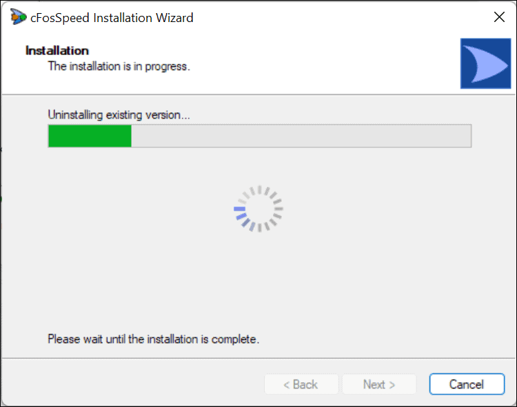 - During installation, you may see a prompt indicating that a version of cFosSpeed is already installed. Read the message carefully and click