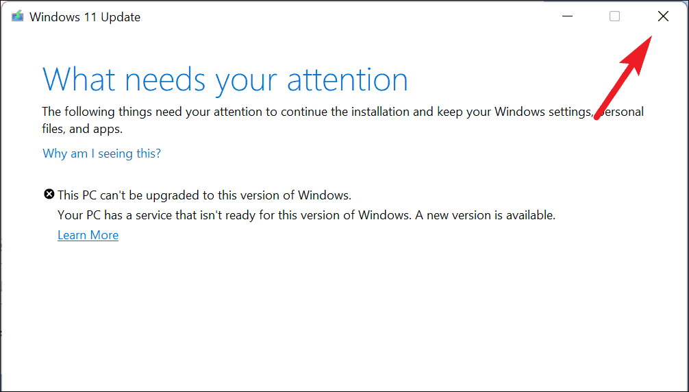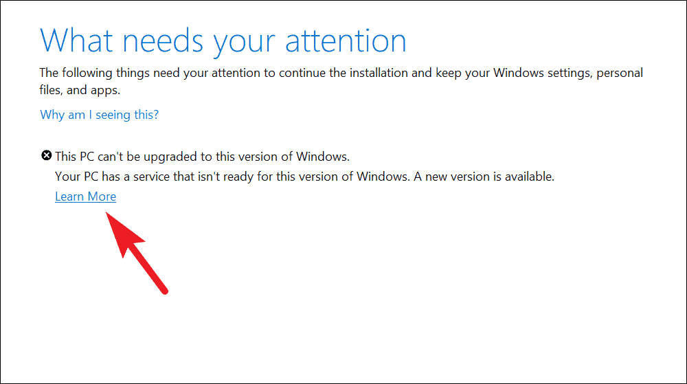 Resolve "This PC can't be upgraded to this version of Windows" from the settings
