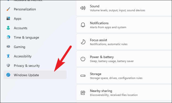 Windows Updatesection from the left-hand panel in the Settings window.