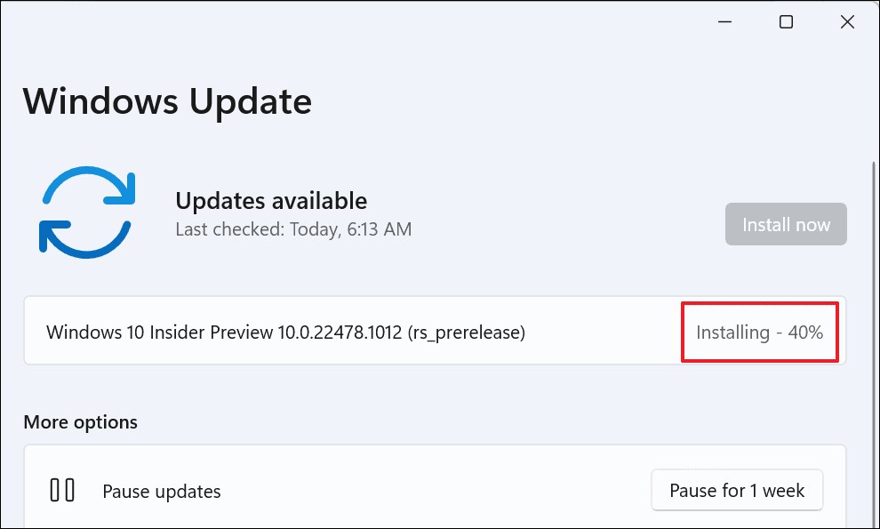 Finally, check the Windows Update screen to verify that the update is being downloaded.