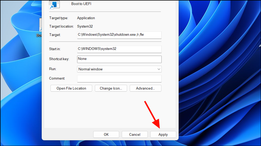 Creating a Boot to UEFI Firmware Shortcut