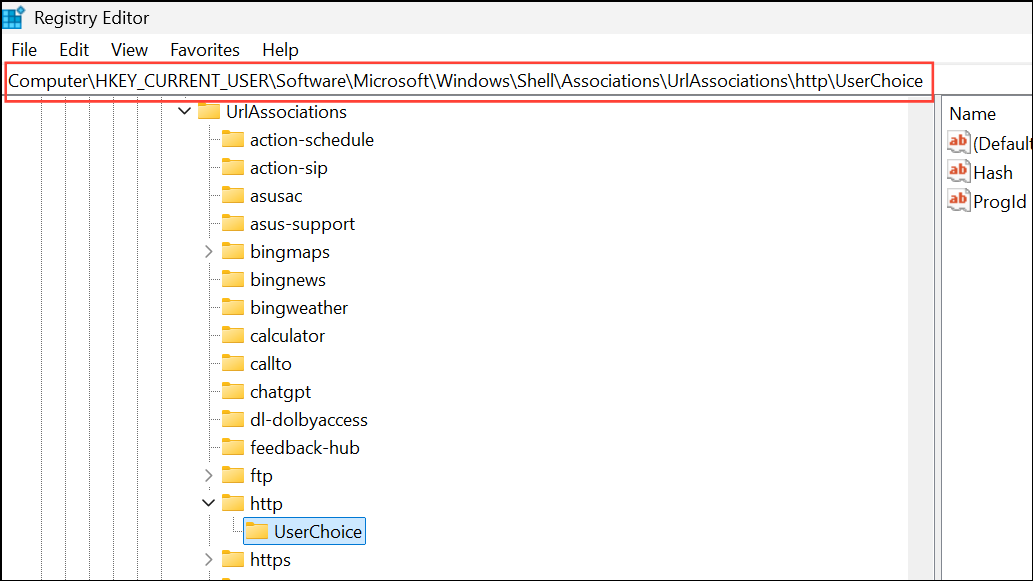 HKEY_CURRENT_USER\Software\Microsoft\Windows\Shell\Associations\UrlAssociations\http\UserChoiceHKEY_CURRENT_USER\Software\Microsoft\Windows\Shell\Associations\UrlAssociations\https\UserChoice