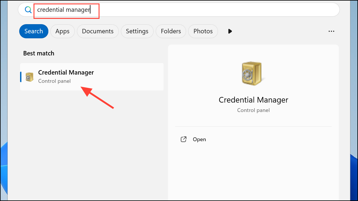 Step 2: Open Credential Manager by searching for it in the Windows Start menu.