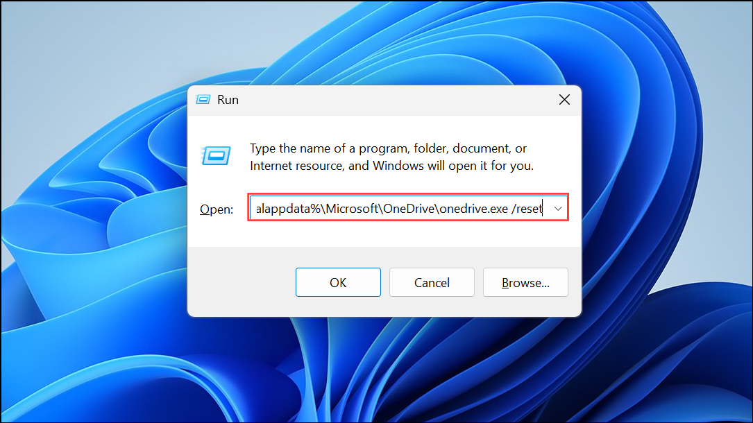 Step 4: Reset OneDrive to its default state. Open the Run dialog with Windows + R and enter the following command: