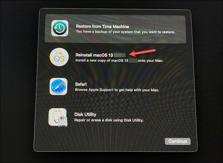 Step 4: From the Recovery Mode menu, select 'Reinstall macOS' and follow the instructions.