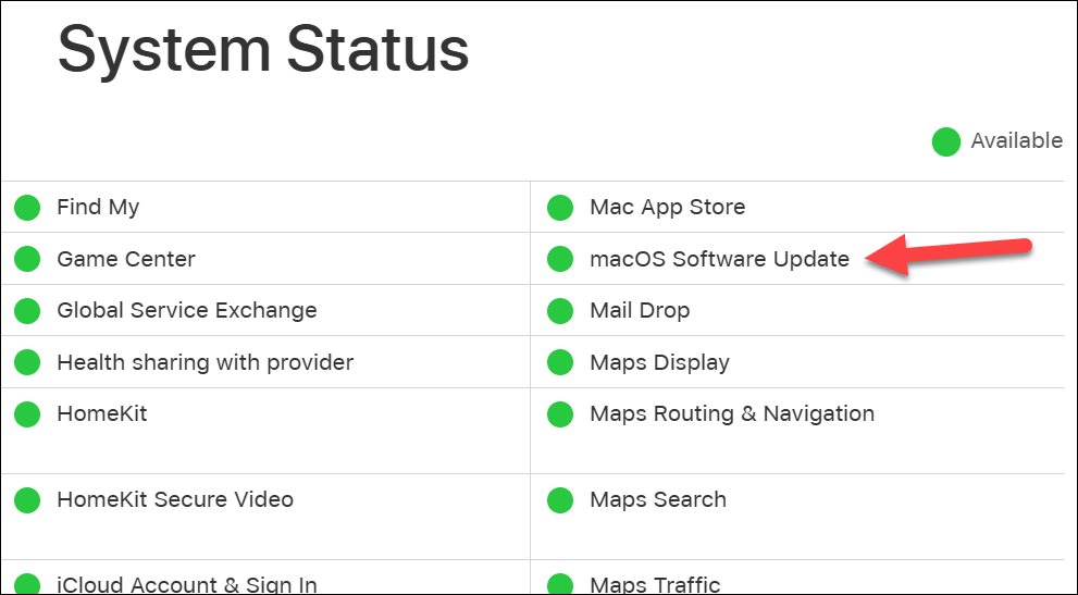 Step 2: Ensure that the dot next to 'macOS Software Update' is green, indicating the service is available.