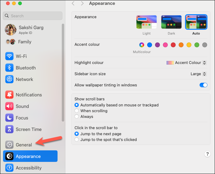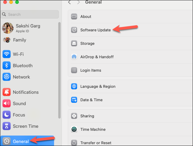 Step 1: Open 'Settings' on your Mac and select 'General' from the sidebar.