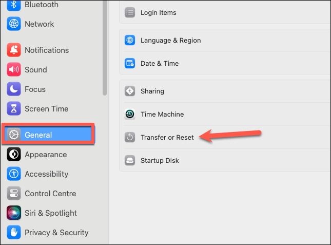 Step 2: Click on 'Transfer or Reset' on the right.