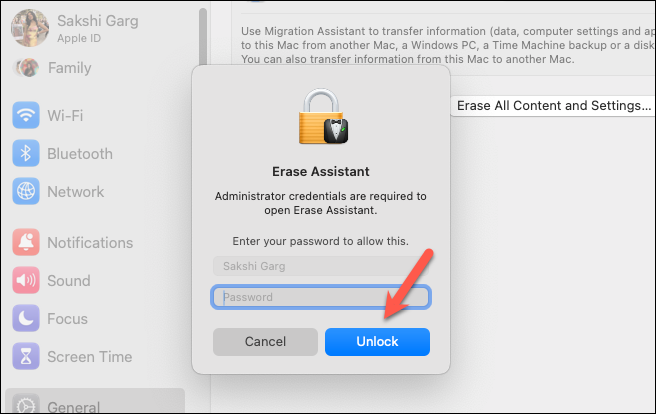 Step 4: Enter your admin password and click 'Unlock'.