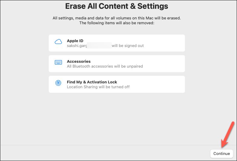 Step 5: Follow the prompts to back up your data if you haven't already, or proceed to erase the Mac.