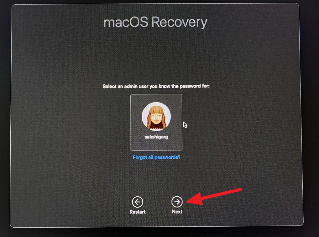 Step 4: Choose a user account and enter the password if prompted.