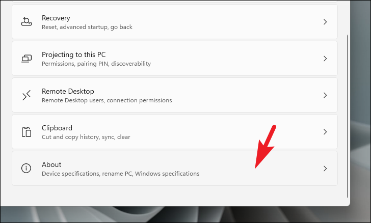 Step 2: Select 'System' from the left sidebar, then scroll down and click on 'About'.