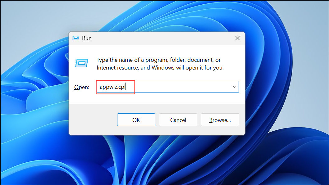 Step 1: Open the Control Panel, type appwiz.cpl in the search box, and press Enter to access Programs and Features.