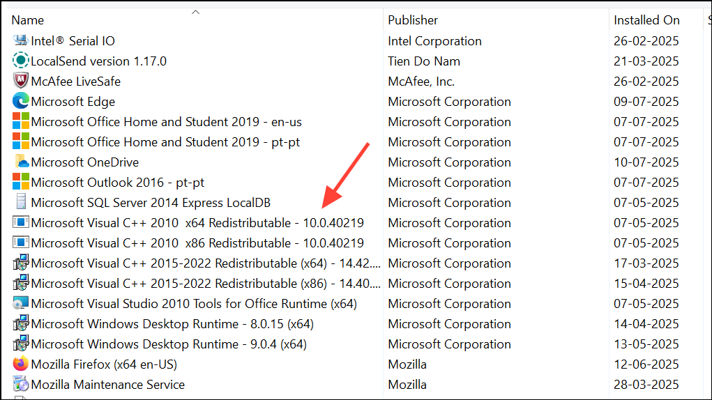 Step 2: Uninstall all instances of Microsoft Visual C++ Redistributable listed.