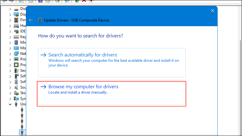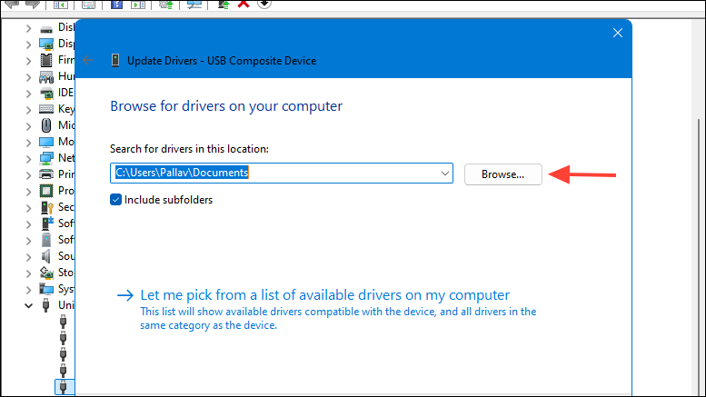 - Click Browse and navigate to the folder containing the downloaded driver files.