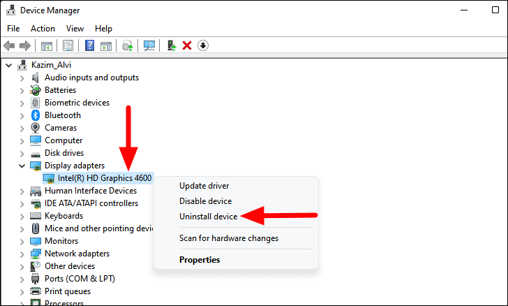 - In the Device Manager window, double-click Display adapters to expand the category.