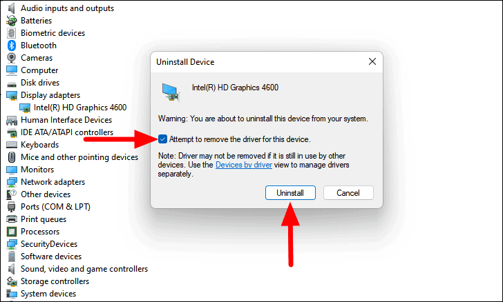- Check the box for Attempt to remove the driver for this device and click Uninstall.