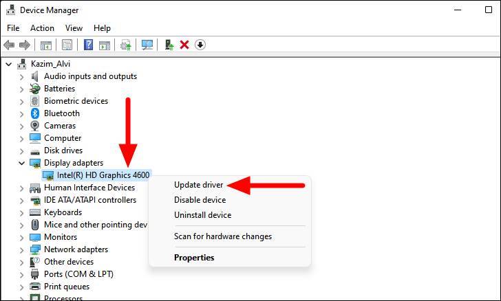 - Right-click your graphics adapter and select Update driver from the context menu.