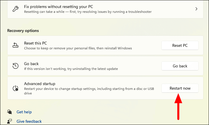 - Your PC will restart to a blue screen with options. Select Troubleshoot.