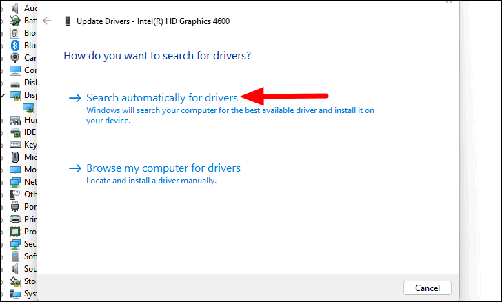 - Choose Search automatically for drivers. Windows will search your system and the internet for the latest driver software.
