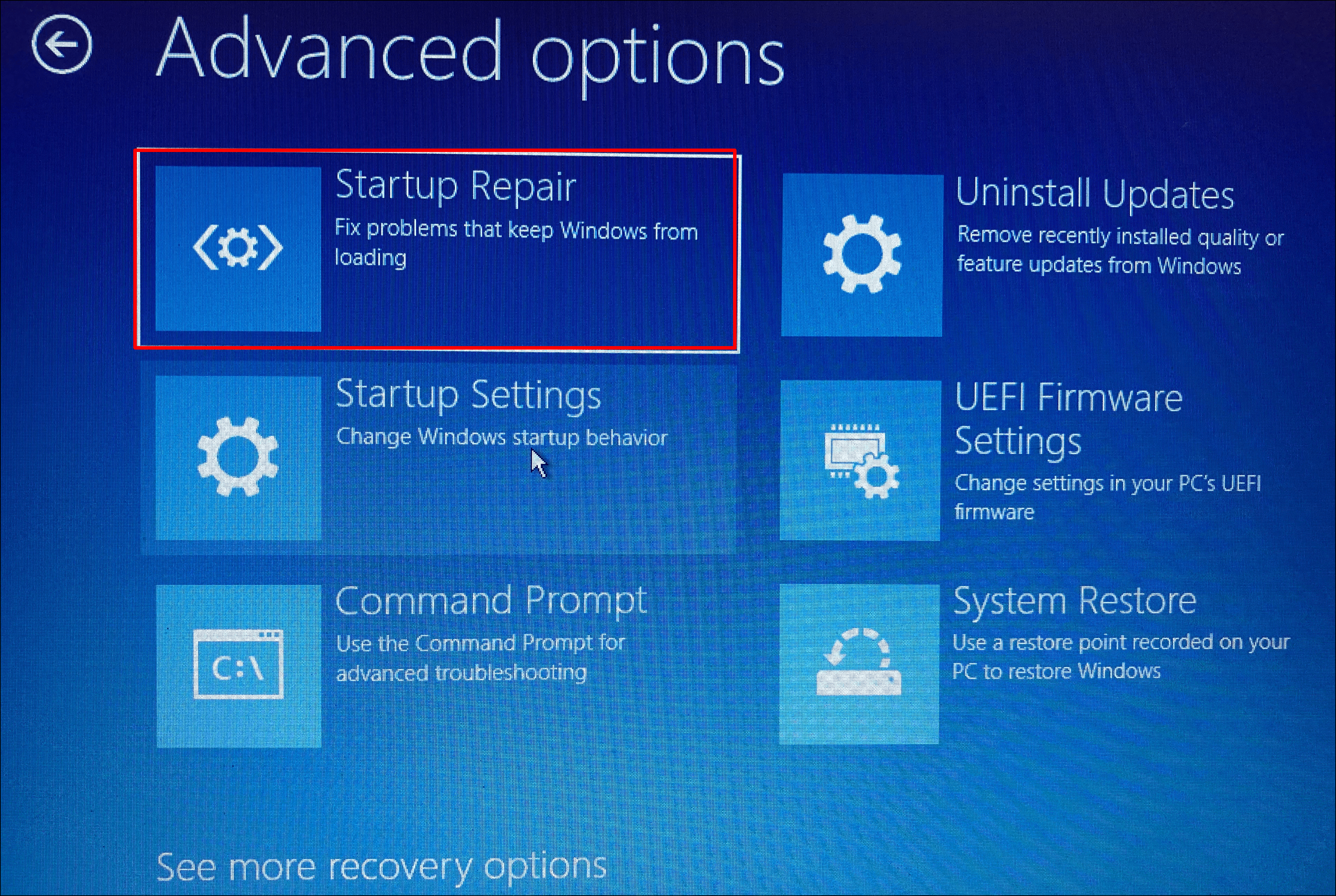 Startup Repair can fix issues that prevent Windows from loading correctly, including the 'Video TDR Failure' error.