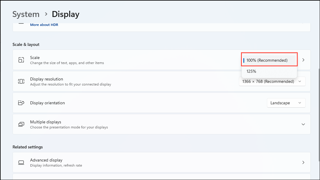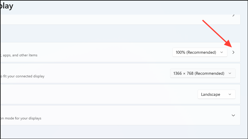 - You can also customize the display scale setting by clicking on the arrow on the right.