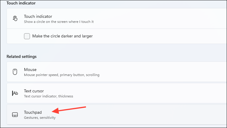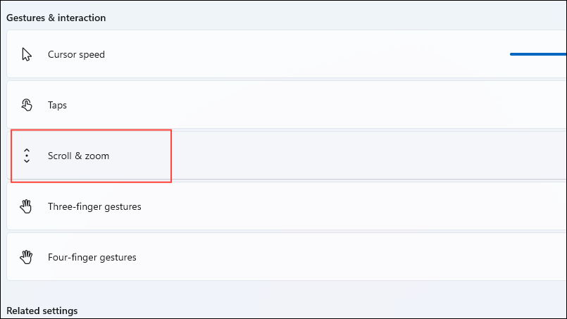 - Once you are on the Touchpad page, click on 'Scroll and zoom'.