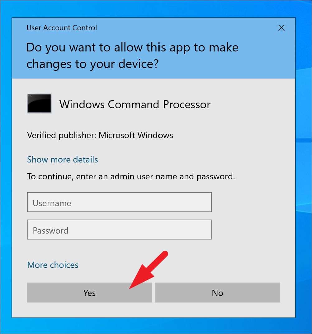 Next, if you are not logged in with an admin account, enter the credentials for one. Otherwise, click on the ‘Yes’ button to proceed.