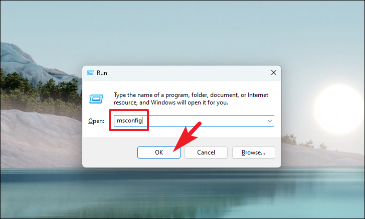 First, press the Windows+R keys together on your keyboard to bring up the Run command utility. Then, type msconfig and hit Enter on your keyboard to proceed.