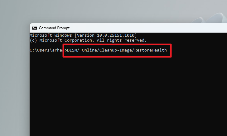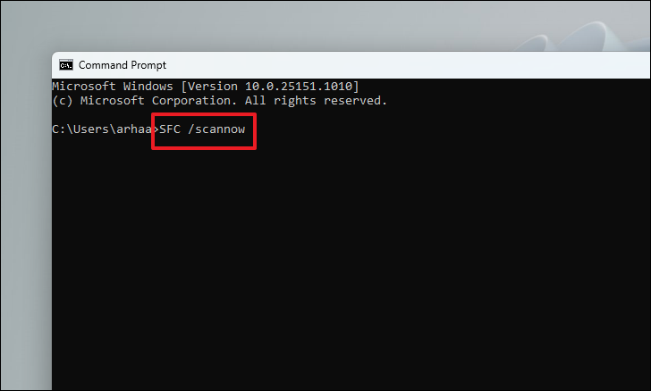 Once completed, type or copy+paste the following command and hit Enter to check and repair the System files on your PC.