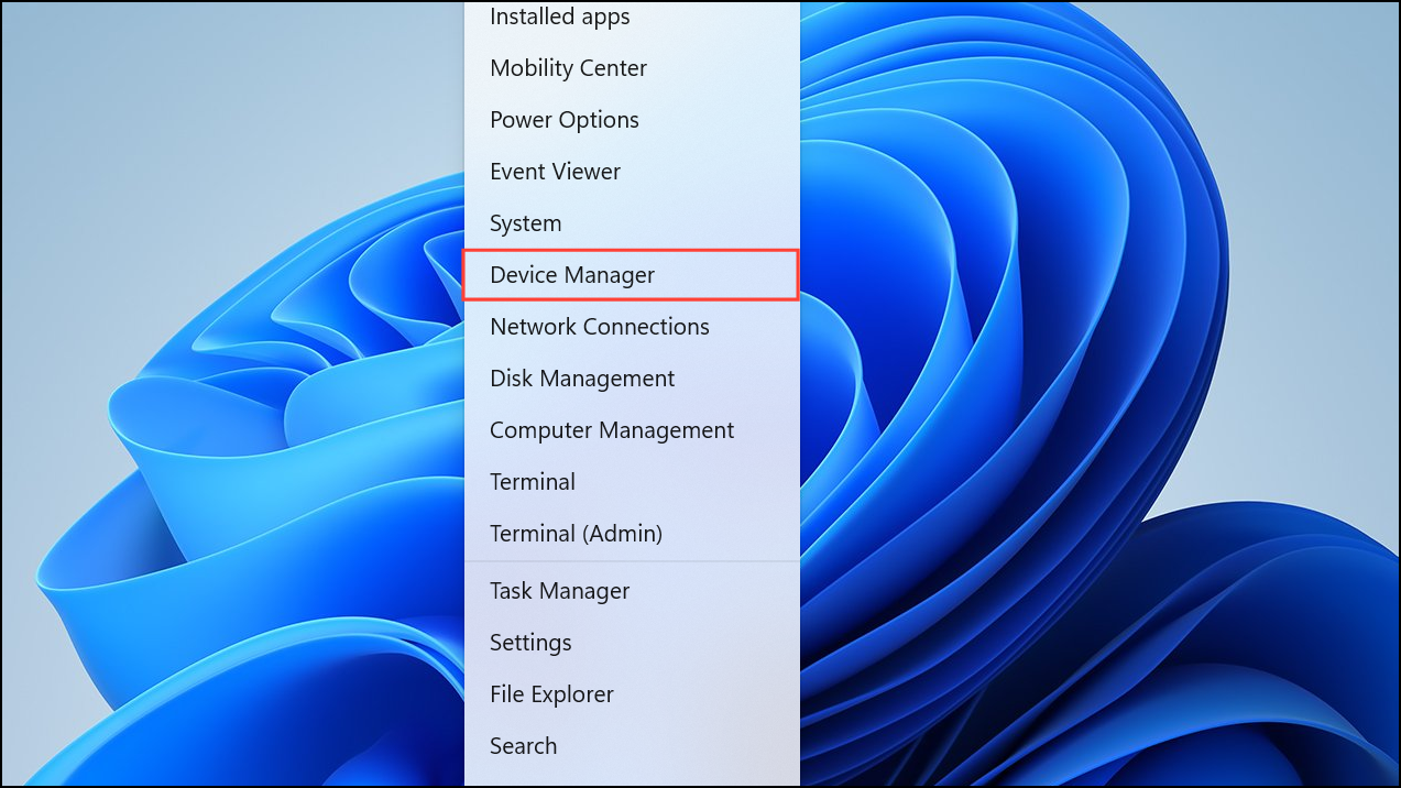 Step 1: Right-click the Start button and choose "Device Manager" from the menu.