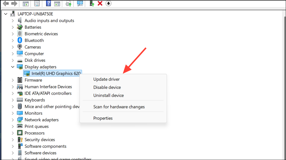 Step 2: In the Device Manager, expand "Display adapters", right-click on your graphics card, and select "Update driver."