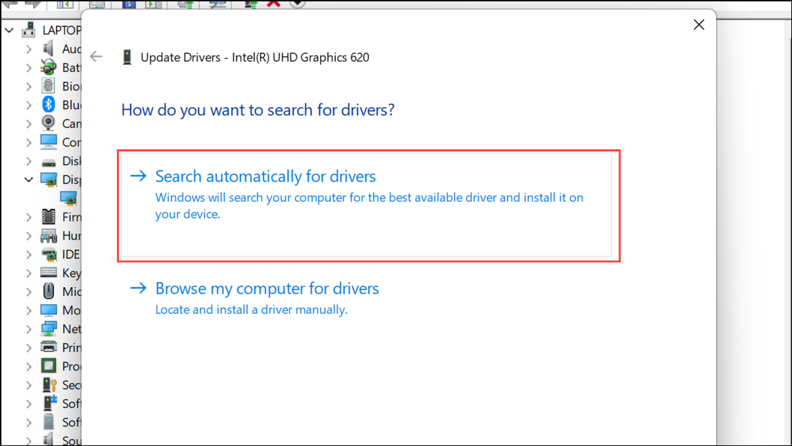 Step 3: Choose "Search automatically for drivers" and follow the prompts to install the latest available driver. Restart your system once the update is complete.